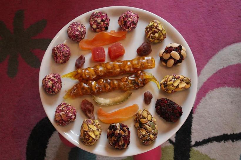 Im Winter essen wir gerne Trockenfrüchte. Sie haben einen hohen Energiewert und lekka schmeckts auch. Auf dem Früchtemarkt gibt es einen Stand der nur solche Leckereien verkauft. Dieser wird von einer persichen Familie geleitet und jeden Mittwoch, wie auch Samstag gibt es selbstgemachte Trockenfruchtschmeckerl und sonst Trockenfrüchte, die man nicht in Berlin findet. Der Preis ist auch sehr angenehm. Die süssen Sachen sind teils Roh vegan und teils nur vegan, also nicht hauptsächlich roh verarbeitet. Das stört uns nicht besonders, denn es schmeckt zum schmelzen schön 😉