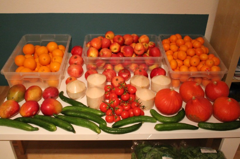 Insgesamt umfasst der Fruchteinkauf 109 kg! Zusätzlich muss ich ja mal erwähnen, dass ja immer meine MAMA auch dabei ist Samstags, und sie ja auch mindestens die hälfte nochmal von meiner Ware für sich selbst einkauft. Meine Ma kauft mehr Gemüse als Obst aber tendiert schon langsam mehr Richtung Frutarier 😉 Das heisst wir haben jeden Samstag ca. 150 bis 170 kg Obst eingekauft. Da kann man glaube ich verstehen, dass sich die Verkäufer um uns reissen oder? Ich glaube wir kaufen mittlerweile mehr als Gewerbekunden auf dem Markt. Ich finde es schön, ein Beispiel für gesunde Ernährungweise zu sein und inspiriere immer mehr Leute, Verkäufer wie auch Käufer, die Frucht mehr in ihr Leben zu integrieren.