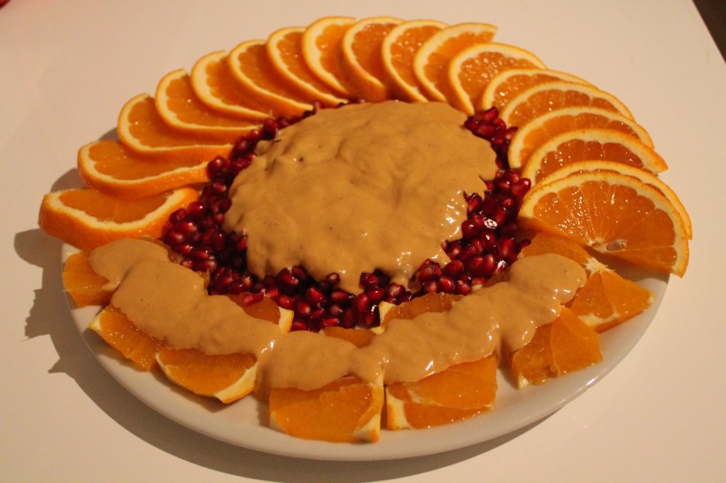 OrangenGranatapfelmahlzeit mit Mandelmandarinendressing
